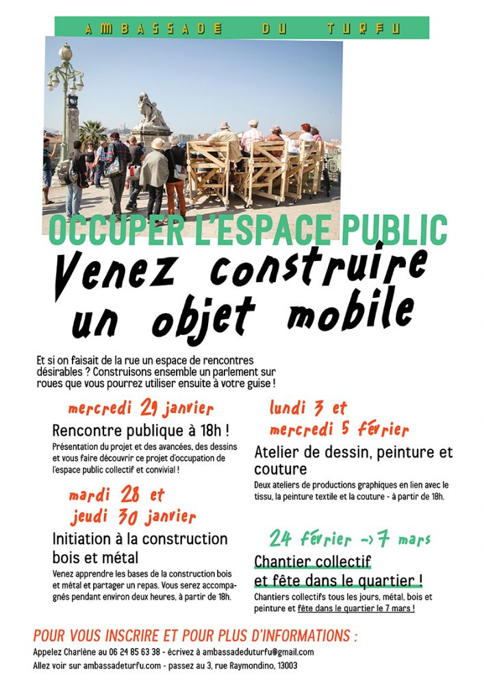 Ce projet est porté par le Collectif Etc et s’inscrit dans un travail au long cours que l’on mène depuis 2016 dans le quartier de la Belle-de-Mai autour de l’Ambassade du Turfu.