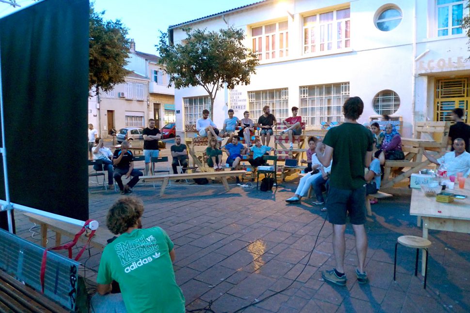 De manière ponctuelle, nous programmons des temps publics gratuits pour donner à voir et à questionner des expériences de transformation du cadre de vie portées par ses habitants et usagers.