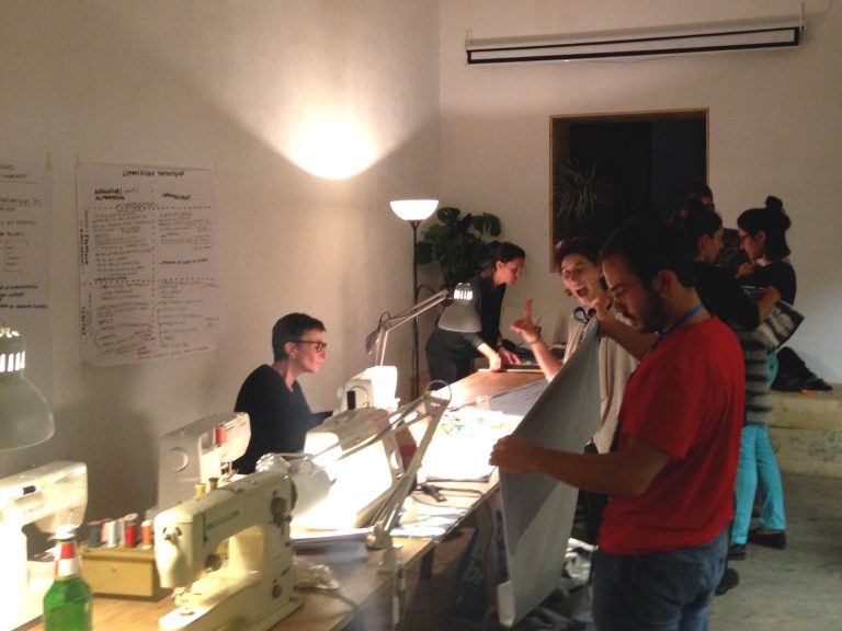Des ateliers collectifs de couture, une fois par mois. Pour les nouveaux, on vous propose d’apprendre les bases du maniement de la machine à coudre. Pour les autres, ce ne sont pas des cours, chacun y apporte son ouvrage pour une entraide de machine à machine.