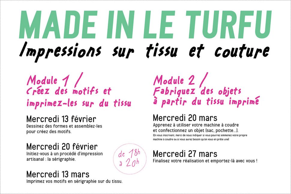 Orientés vers la fabrication d’objets utiles et quotidiens, les ateliers Made in le Turfu ont pour objectif de se former collectivement à des procédés et des savoir-faire artisanaux, tout en contribuant à renforcer la confiance et la capacité à faire des habitants de la Belle de Mai.