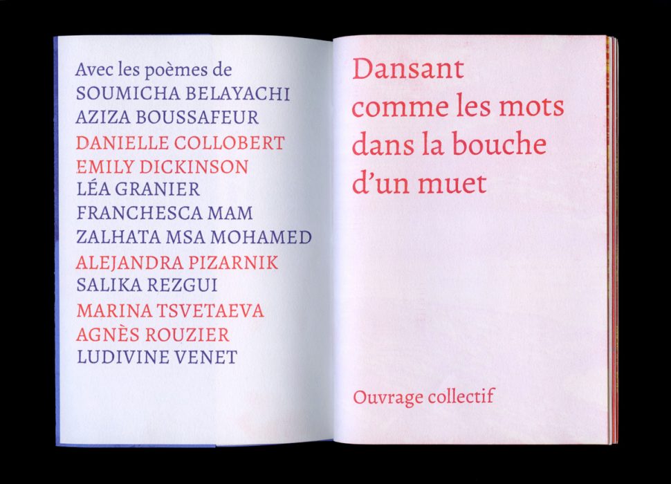Dans un premier temps, le trio de graphistes s’est attelé à sélectionner avec Sacha Steurer les textes qui seraient publiés, en mêlant les poèmes écrits dans les femmes et des textes de figures féminines de la poésie, étudiés au cours des ateliers d’écriture. Puis ils ont réalisé une série d’illustrations, répondant à des assemblages aléatoires de mots extraits des poèmes. Le tout a ensuite été compilé dans un livret imprimée à 100 exemplaires dans les locaux de l’Ambassade du Turfu avec leur imprimante Riso. Le façonnage du recueil a ensuite été réalisé avec les participantes de l’atelier d’écriture, l’occasion de découvrir leurs poèmes sous un nouveau jour et de s’investir dans la fabrication de leur objet.